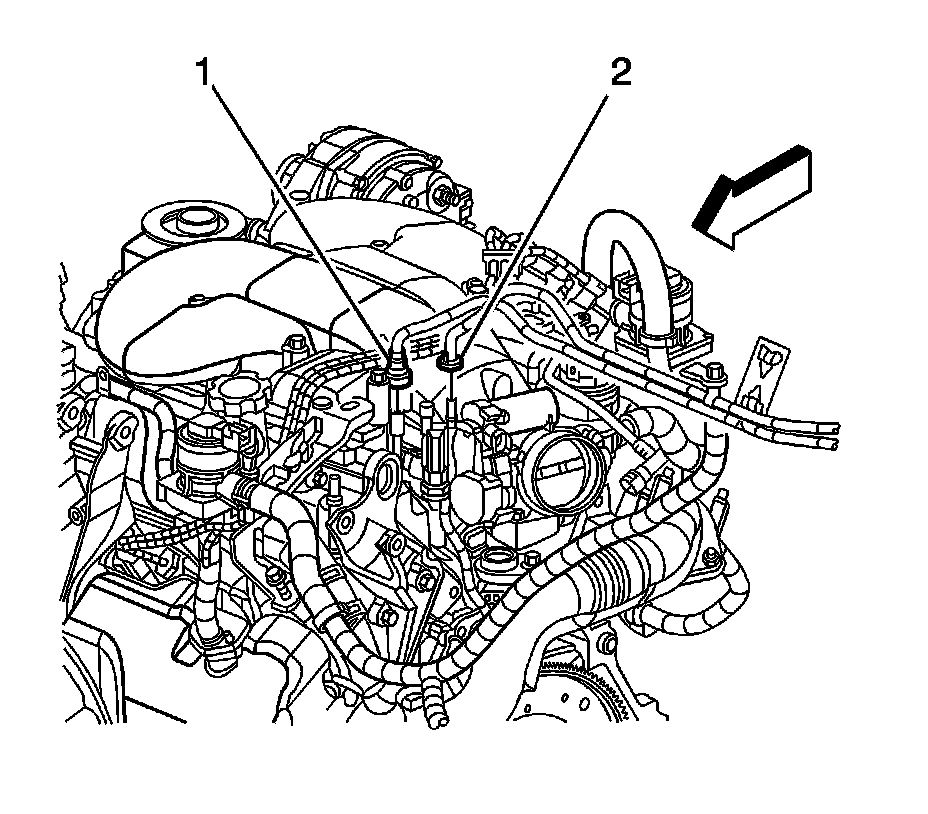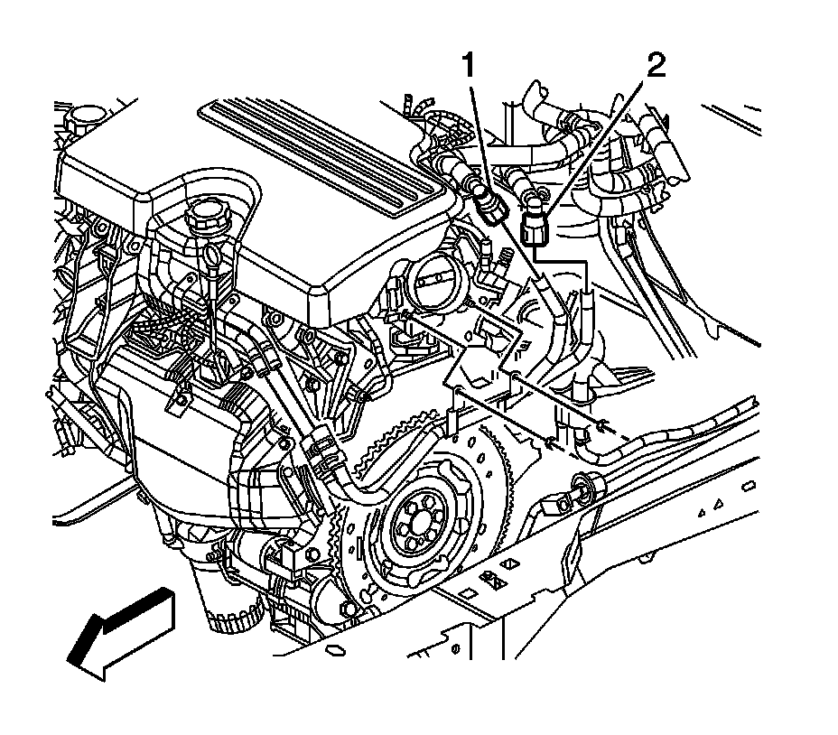 97. Connect the fuel feed (1) and EVAP (2) line quick connect fittings. Refer to Metal Collar Quick Connect Fitting Service Metal Collar Quick Connect Fitting Service and Plastic Collar Quick Connect Fitting Service Plastic Collar Quick Connect Fitting Service.
