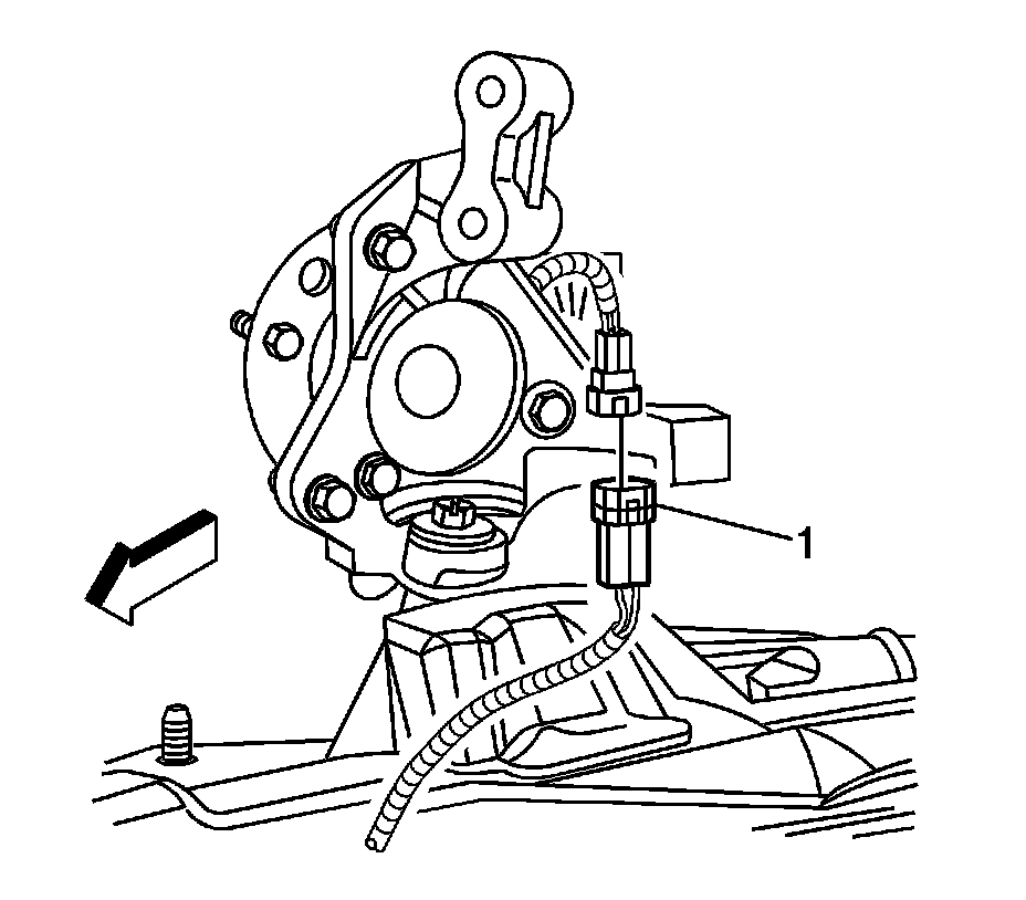 43. Connect the engine harness electrical connector (1) to the EVAP purge solenoid.