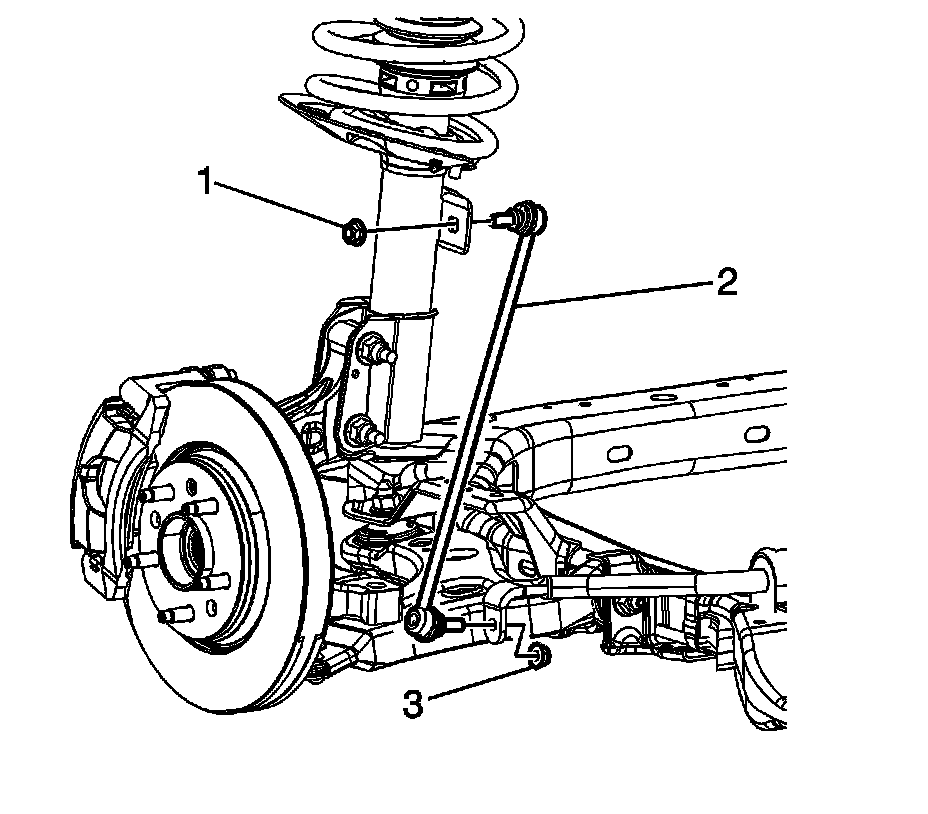 84. Install the stabilizer shaft link lower nuts (3) and tighten to 23 Nm (17 lb ft).