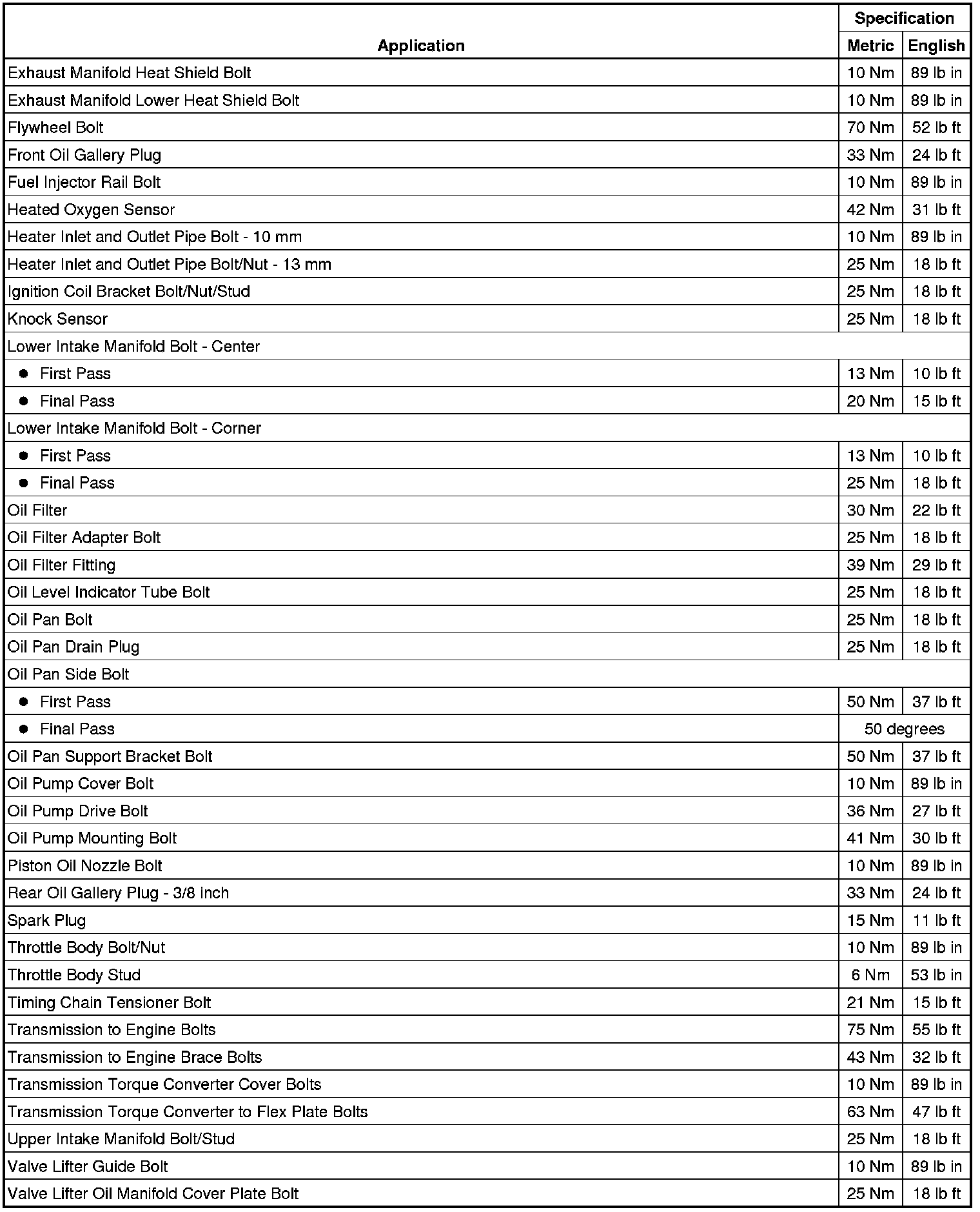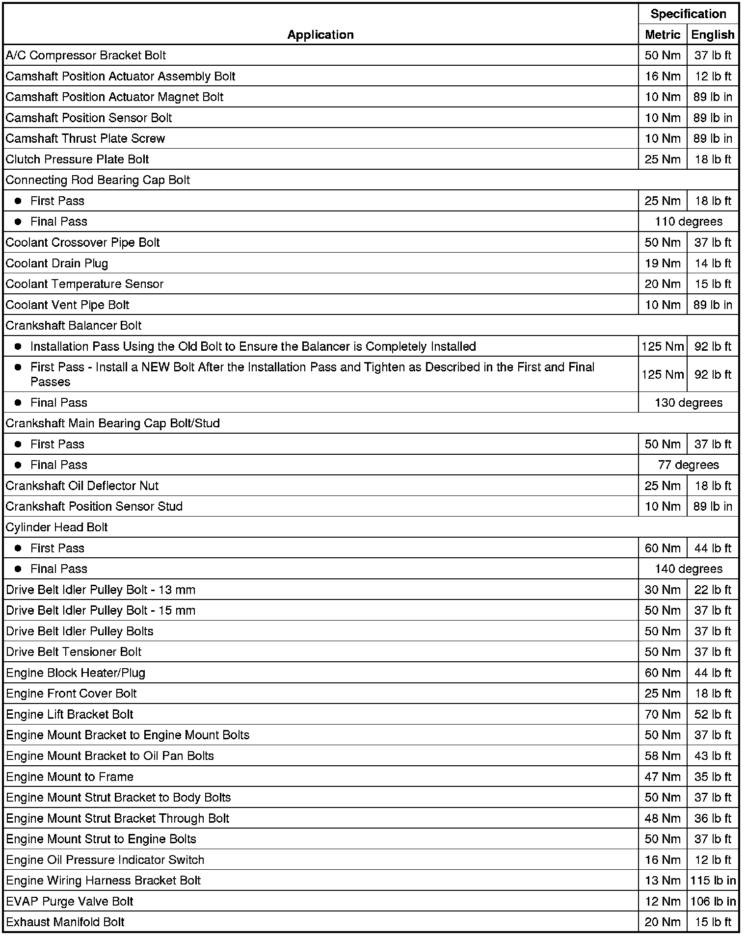 Fastener Tightening Specifications
