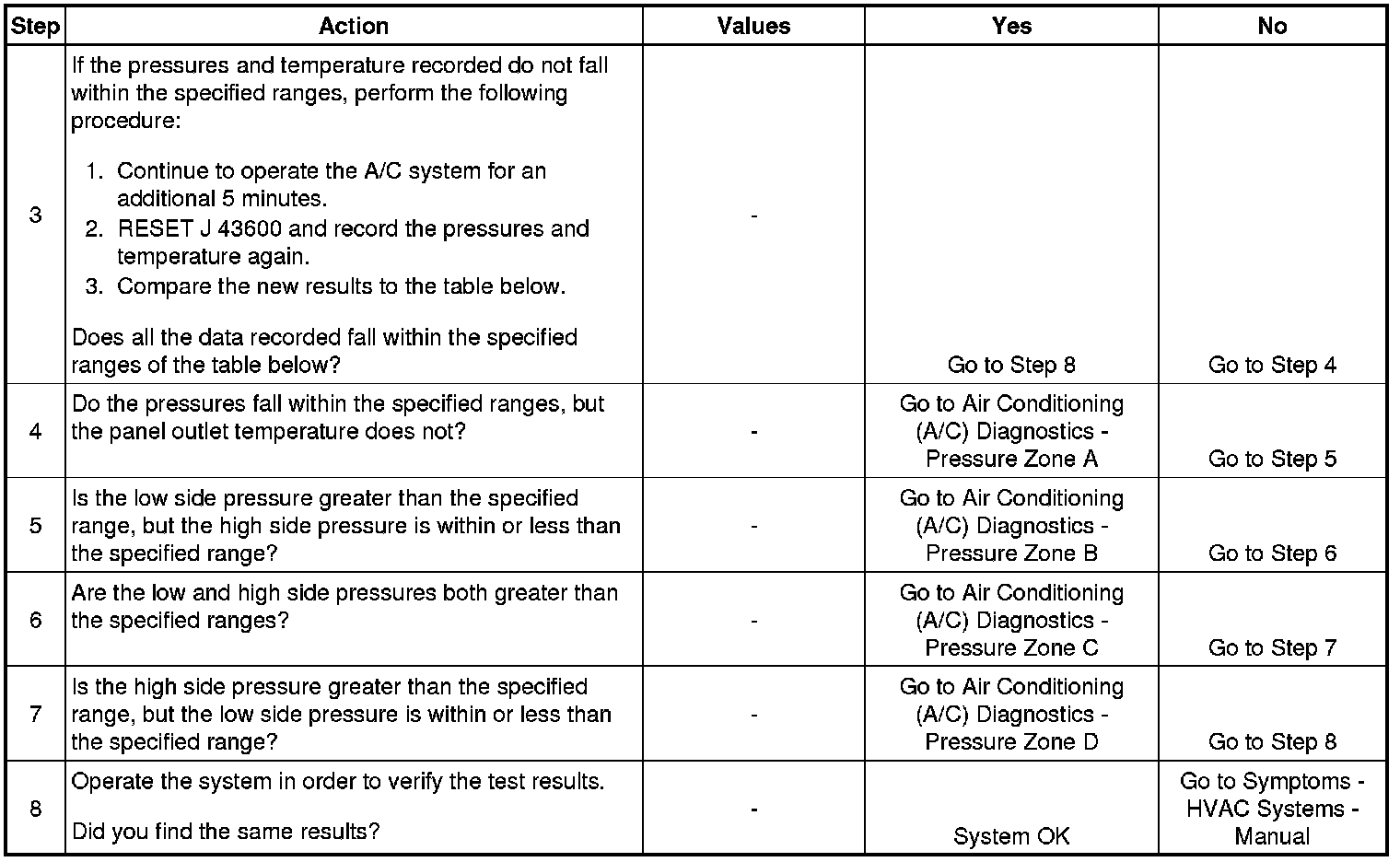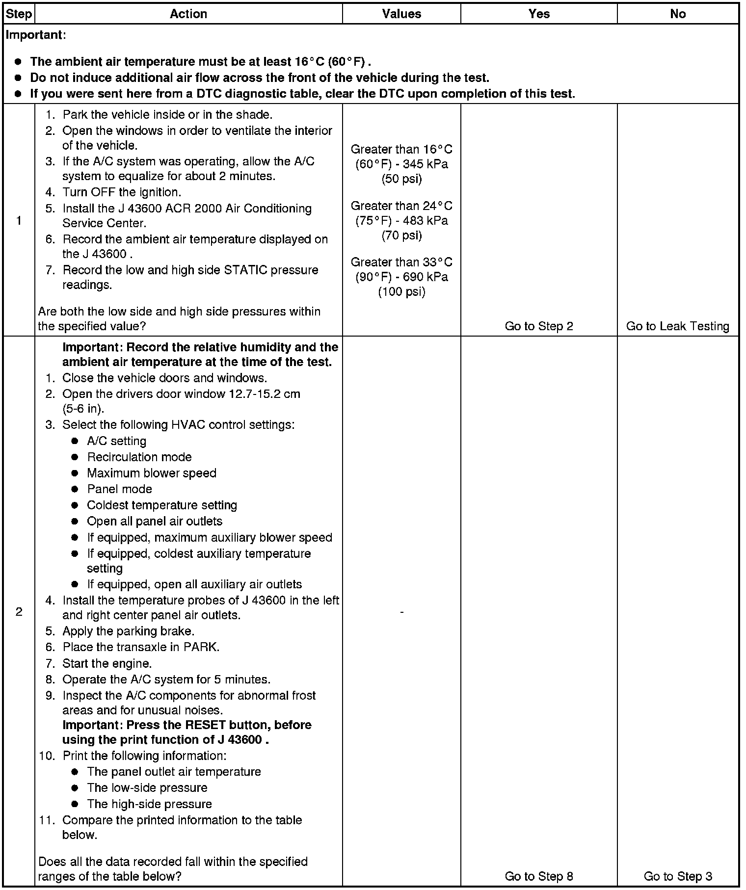 1. This step determines if the A/C system has at least the minimum refrigerant charge required to operate the system without damage.