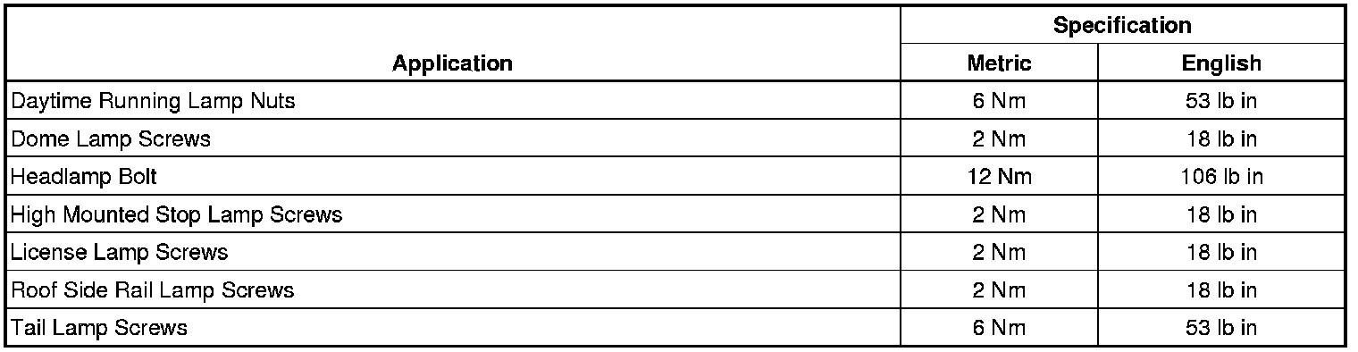 Lighting and Horns: Specifications
