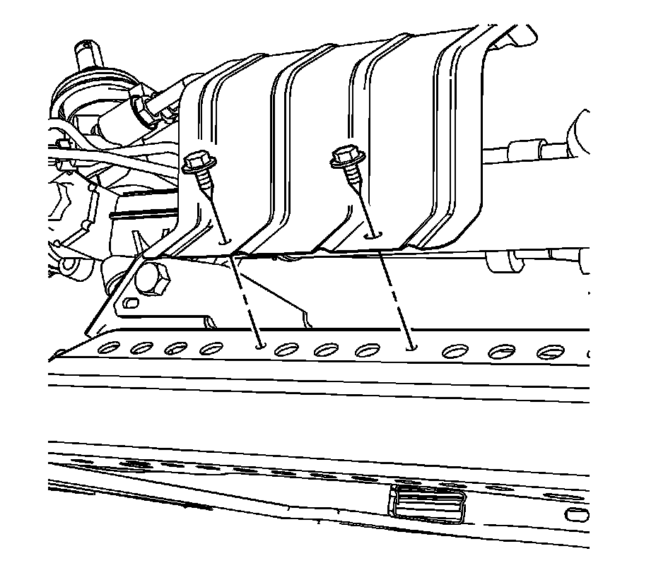 3. Position the steering gear heat shield, install the 2 bolts, and tighten to 14 Nm (124 lb in).