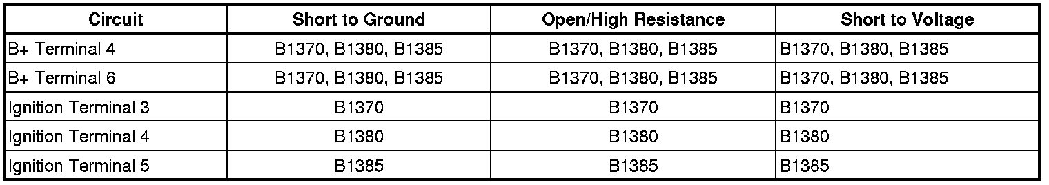 1. Connect a test lamp between each fuse test terminal of the ignition switch B+ circuit fuse and ground. The test lamp should illuminate.