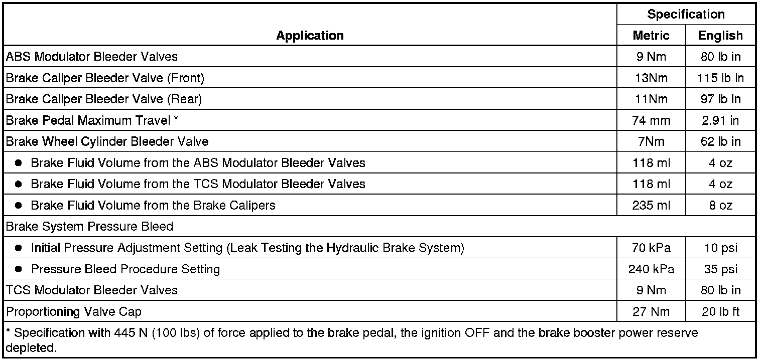 Brake System Specifications