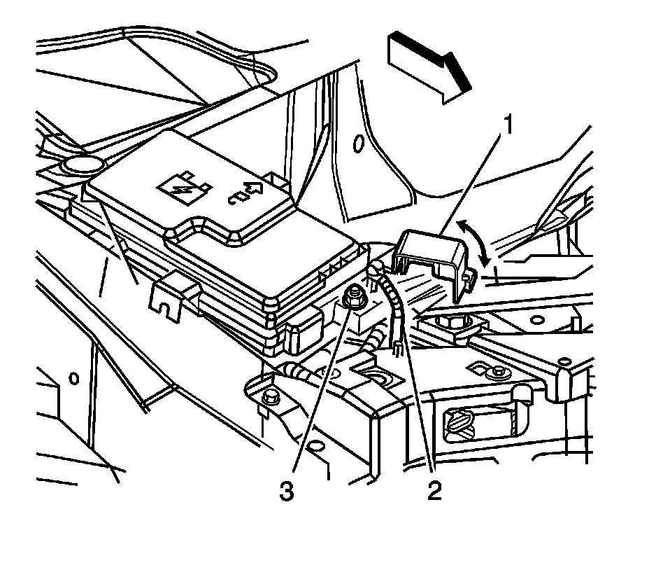 4. Remove the positive battery cable nut (3) and disconnect the cable (2) from the positive terminal stud.
