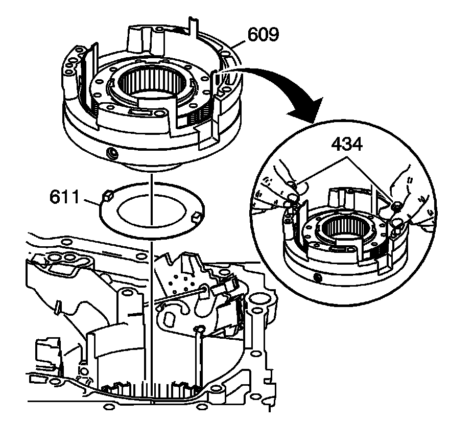 3. Remove the thrust washer (611) from the second clutch housing. The washer may be stuck to the support assembly.
