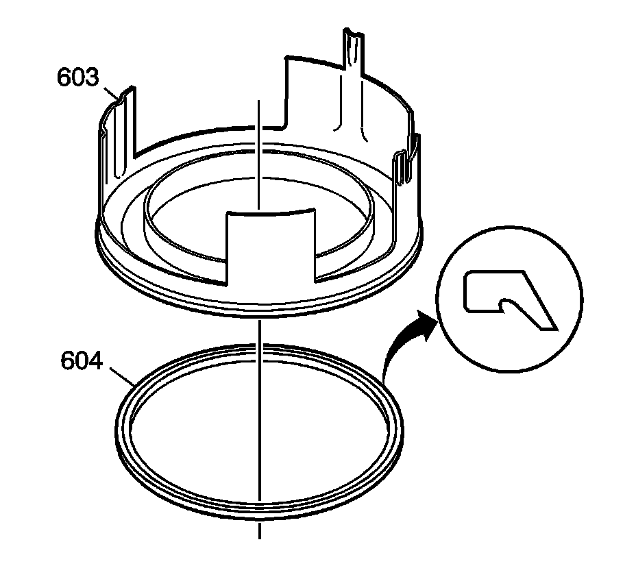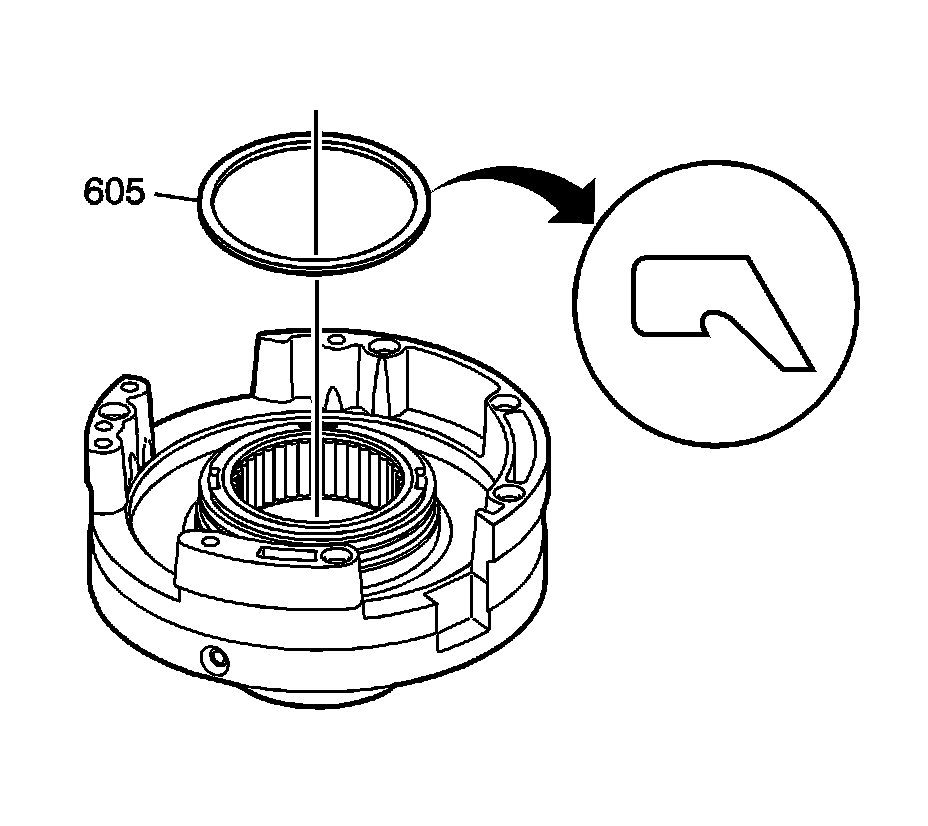1. Use transmission fluid in order to lubricate a new fourth clutch piston outer seal (604). Install the seal onto the fourth clutch piston assembly (603).