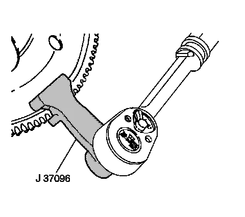 3. Use the J-37096 - Holder in order to rotate the flywheel and access the torque converter bolts.