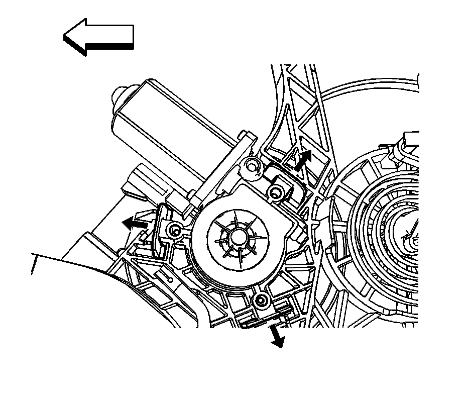 2. Position the power window module motor to the 3 window module retaining tabs. Press into place until fully seated.