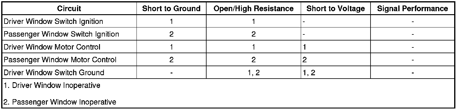 12. If all circuits test normal, test or replace the front passenger window motor.