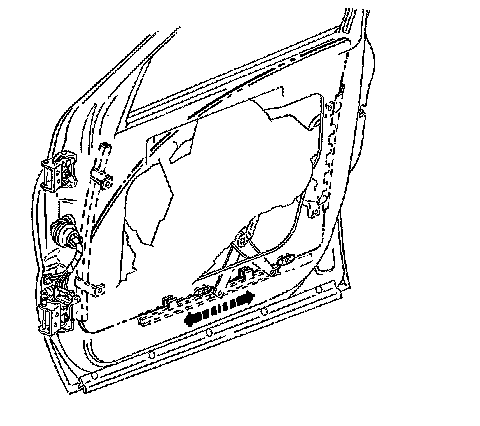 1. Remove the front door water deflector. Refer to Front Side Door Water Deflector Replacement Front Side Door Water Deflector Replacement.