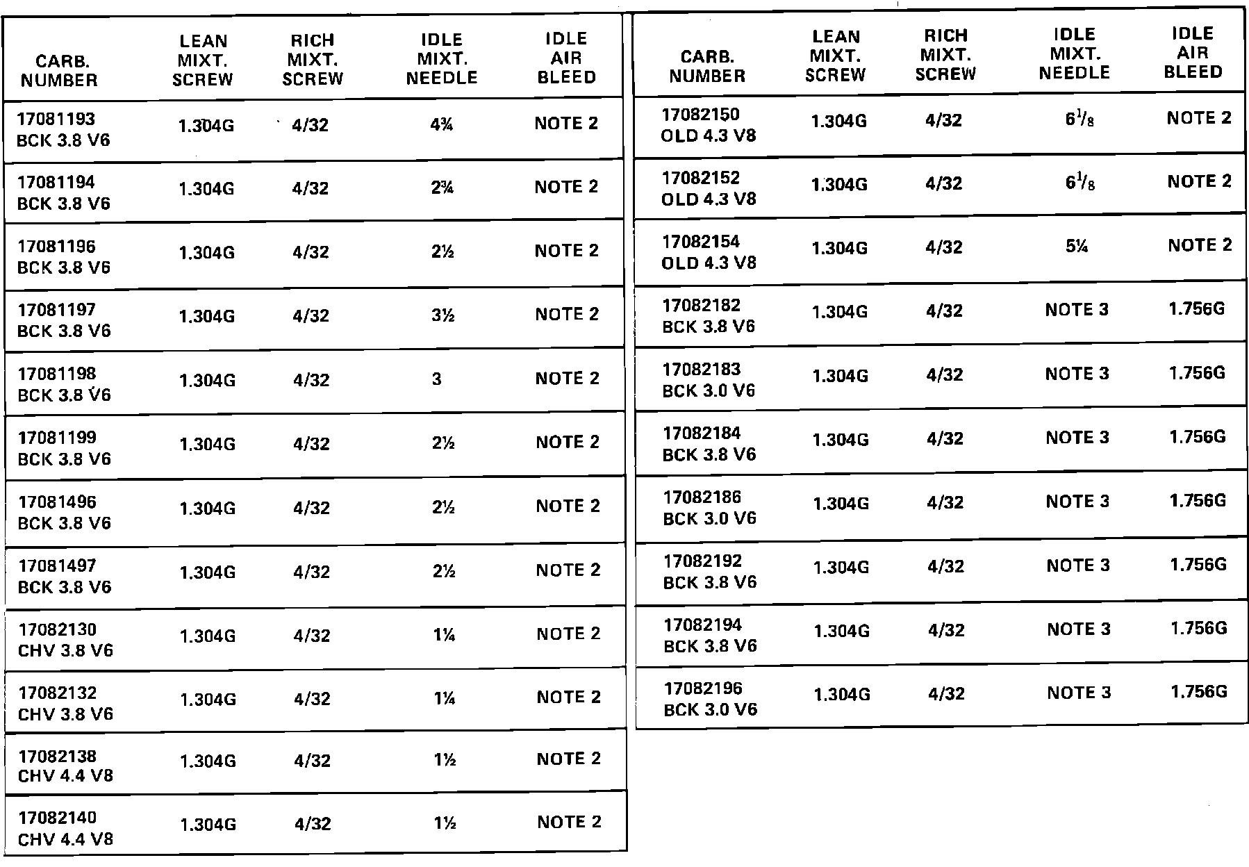 Number 82-I-230 Section 6 Date 02/83Subject: REVISED MIXTURE CONTROL ADJUSTMENTS AND SPECIFICATIONS FOR 1978-1982 COMPUTER COMMAND CONTROL DUALJET AND QUADRAJET CARBURETORS (FEDERAL AND CALIFORNIA)