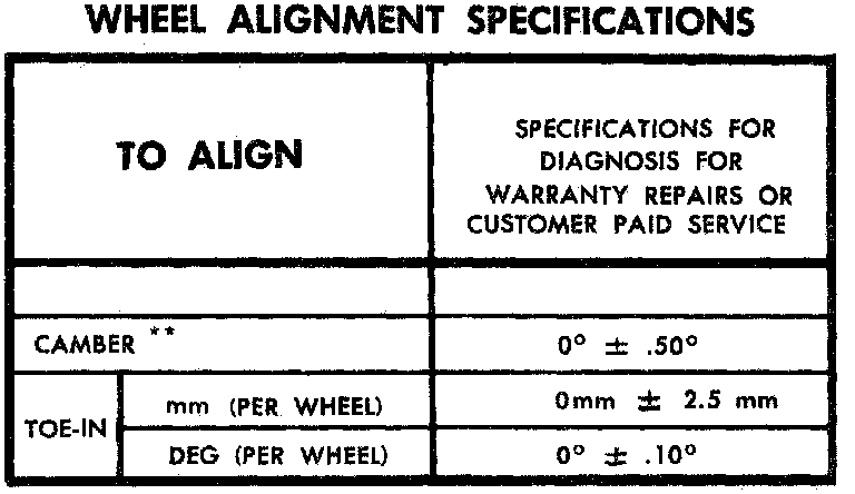 TOE-IN Left and right side to be set separately per wheel and Steering Wheel must be held in straight ahead position within ±5° (1.2 mm).