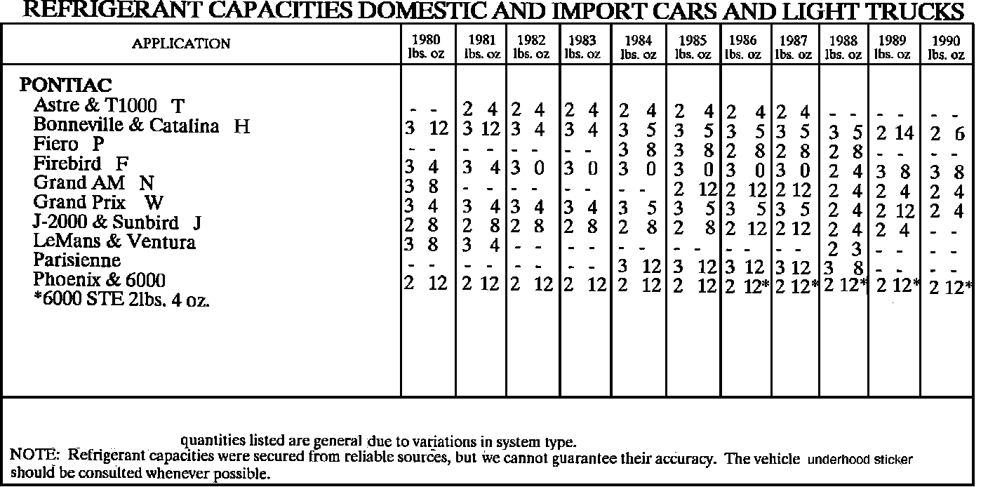 Refrigerant Capacities