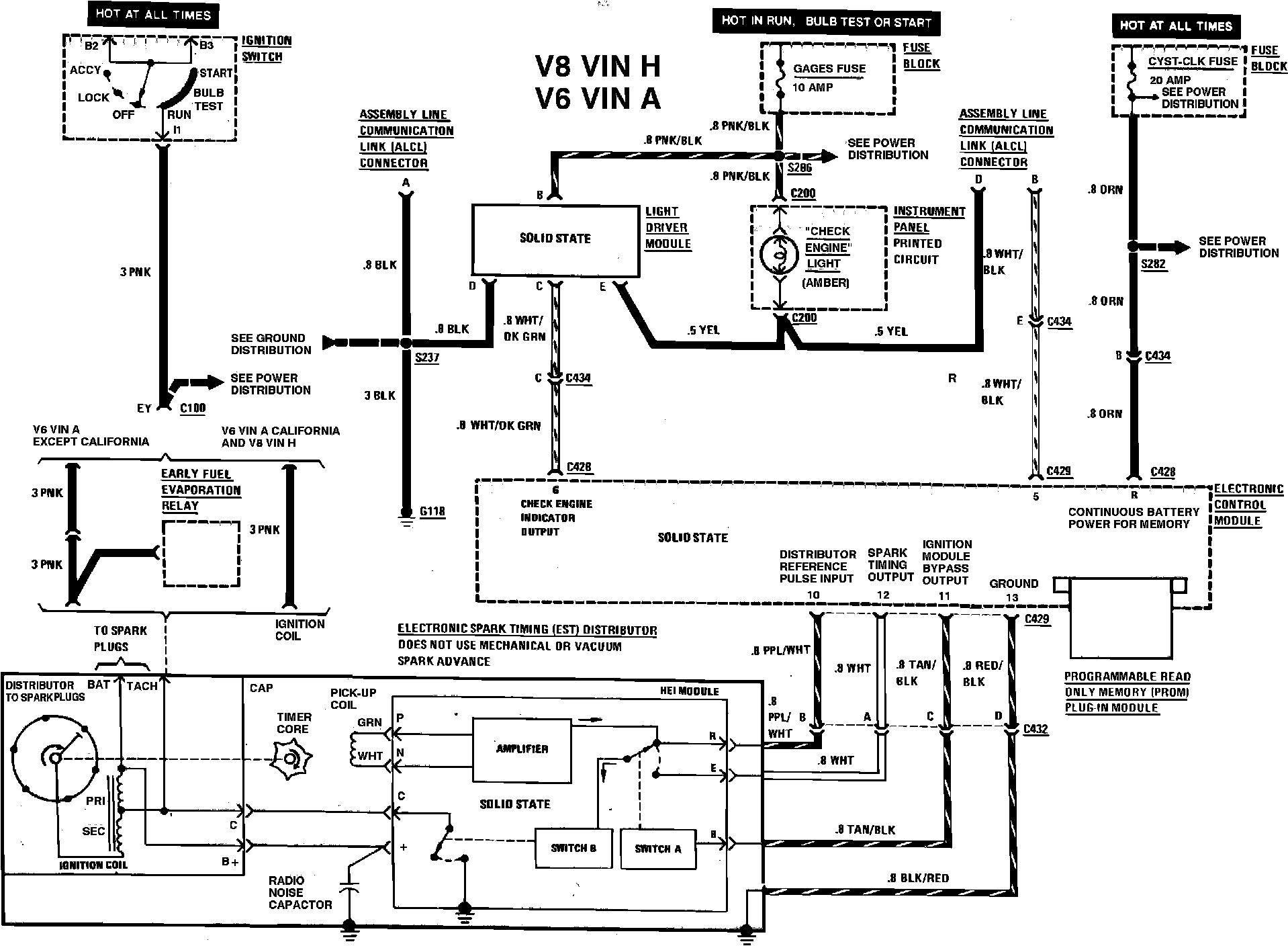 Computer Command Control (Check Engine Light & Ignition System) Wiring Circuit W/V6-231 (V.I.N. A) & V8 305 (V.I.N. H):