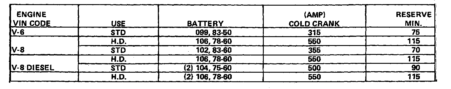 Starting and Charging: Specifications