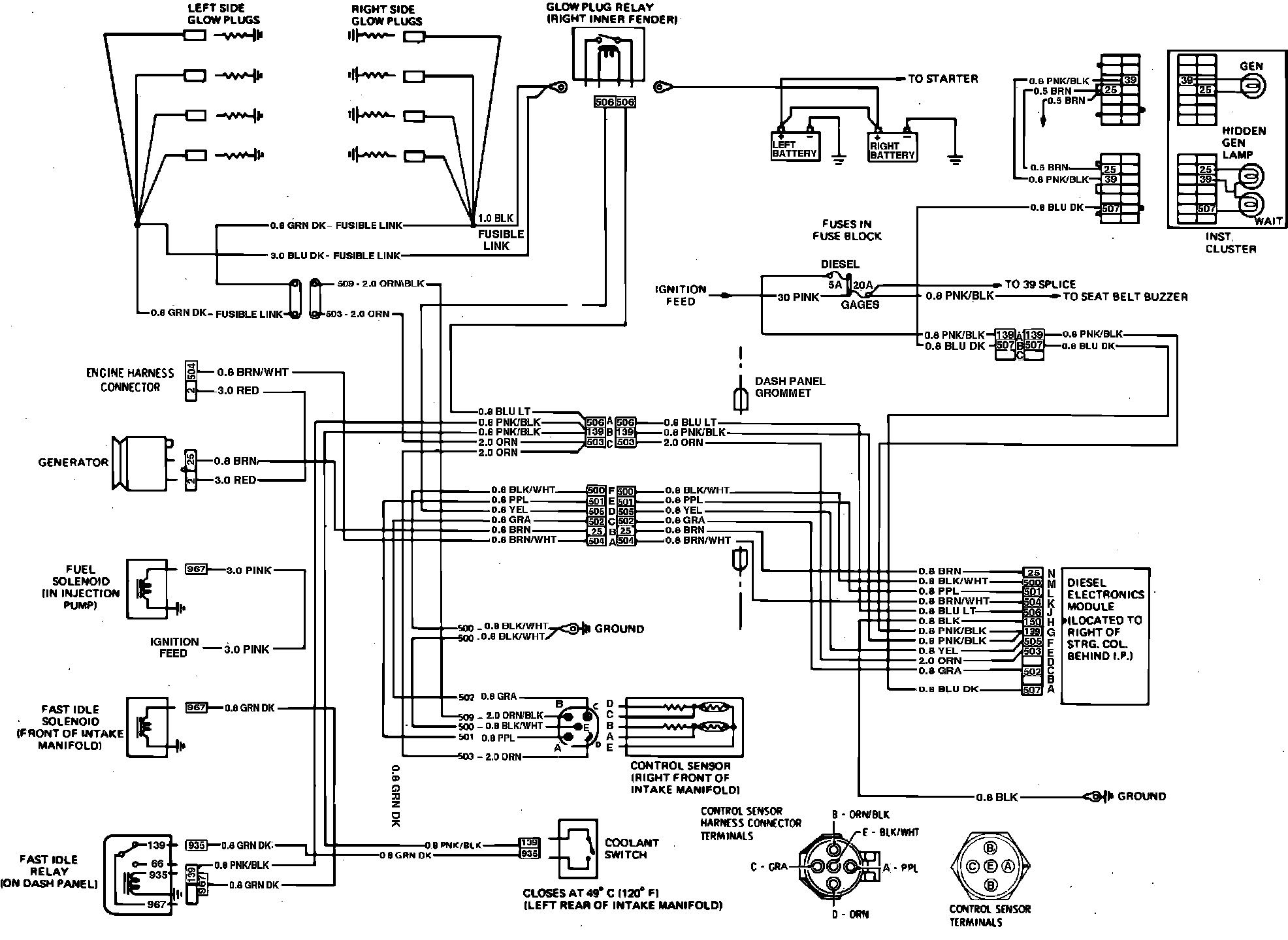 Fig. 3 Diesel engine electrical system. 1982-83 Intermediate Models w/V8 engine:
