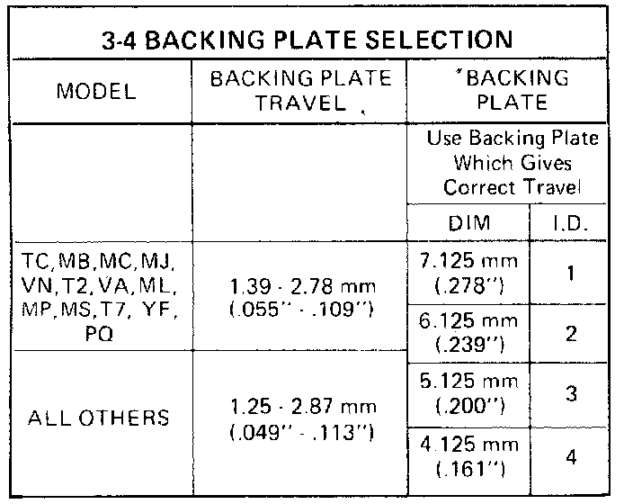 2. Select the proper backing plate to obtain the correct clearance. Refer to image.