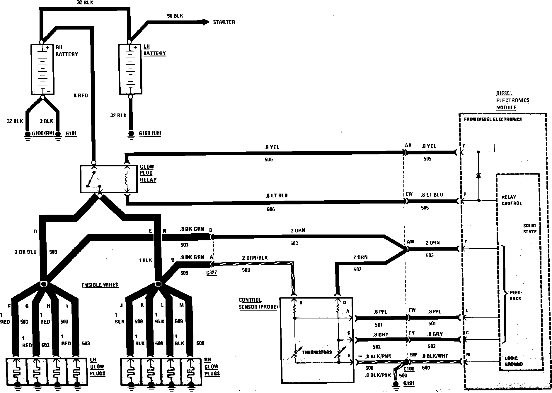 Diesel Engine Fuel Control & Glow Plugs Wiring Circuit: