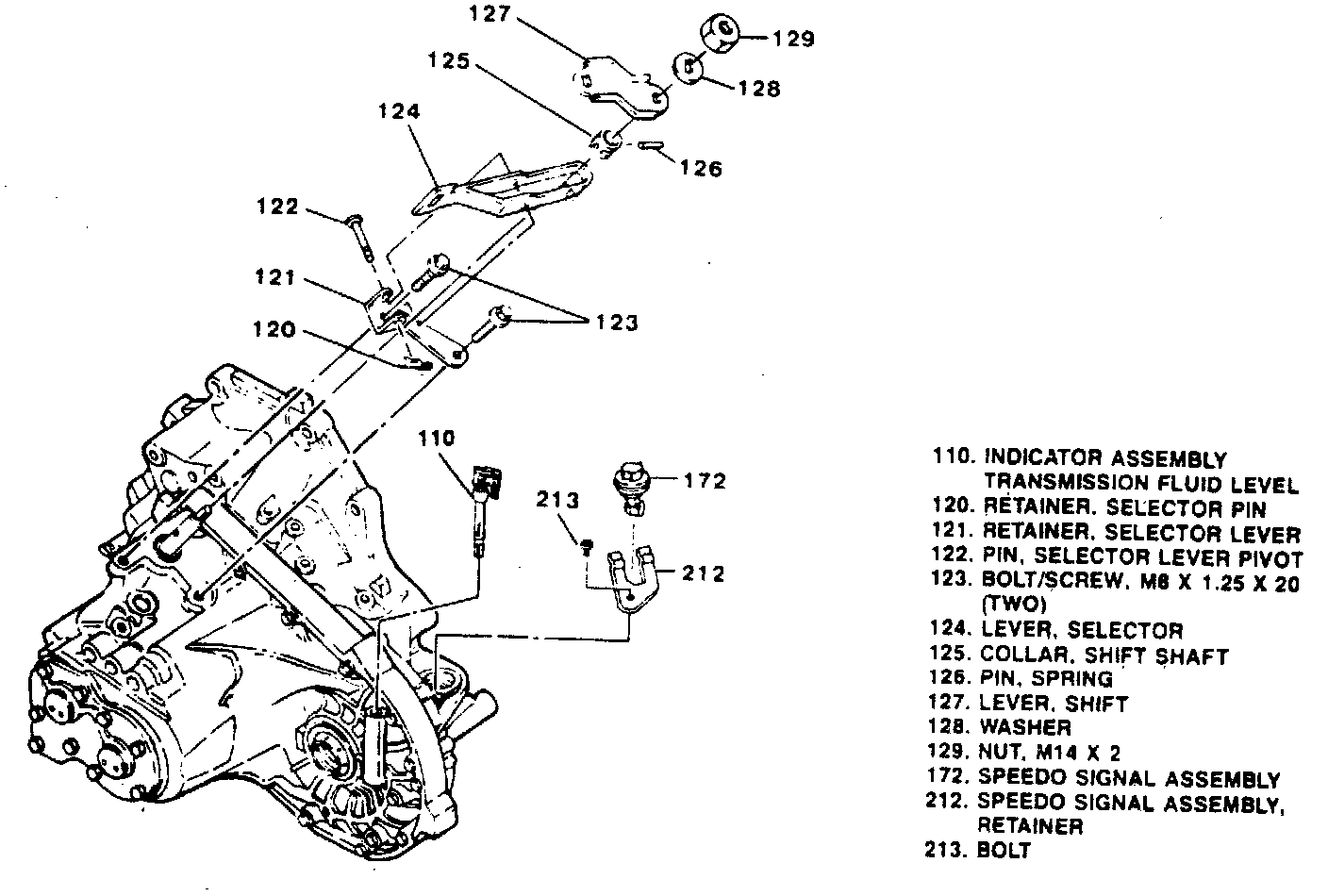 f. Remove electronic speedometer signal assembly (172), retainer (212) and attaching bolt (213).