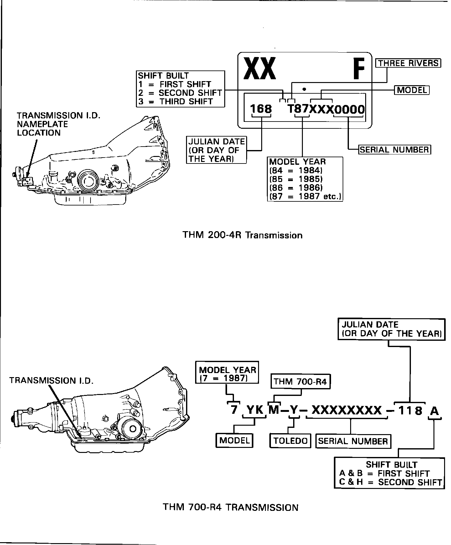 Figure 1 - THM 200-4R And THM 700-R4 Transmission Identification Information: