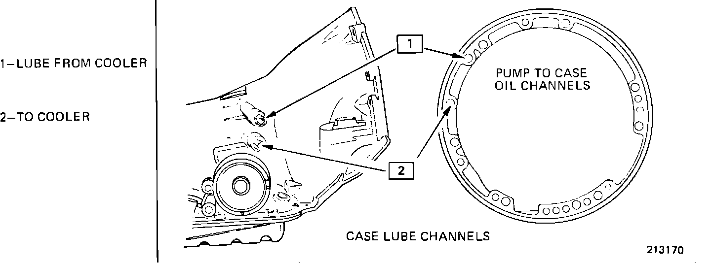 2. Air check the lubrication passages in the case and oil pump cover (see Figures 1 and 2 below).