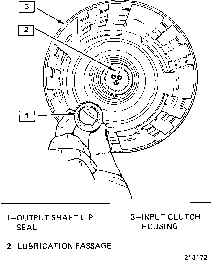3. Air check the lubrication passage in the input housing (see Figures 3 and 4 shown on the reverse side). Check the input housing to output shaft lip seal for wear or damage. Replace with part number 8642178 if necessary (refer to Figure 4).