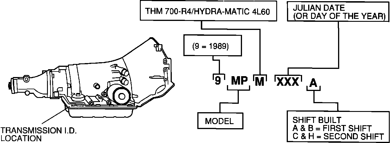 Figure 1 - THM 700-R4/HYDRA-MATIC 4L60 Transmission Identification Information: