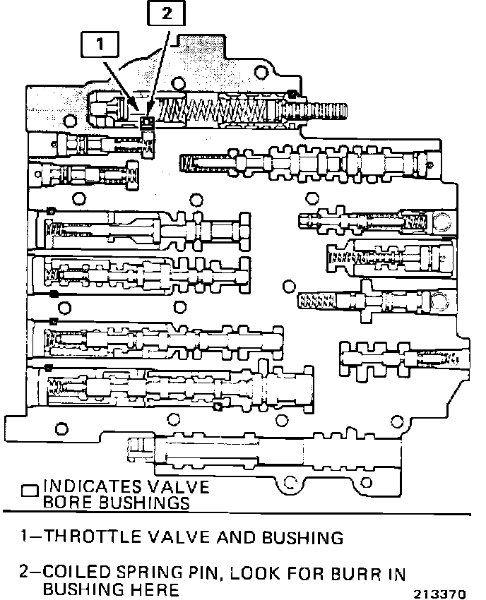 Some 1982 and 1983 THM 700-R4 transmissions may exhibit erratic shift conditions that adjusting the T.V. cable will not correct. The erratic shift condition may result from a sticking throttle valve. Check for a nick on the throttle valve sleeve, in the area of the coiled spring locating pin (see illustration)..