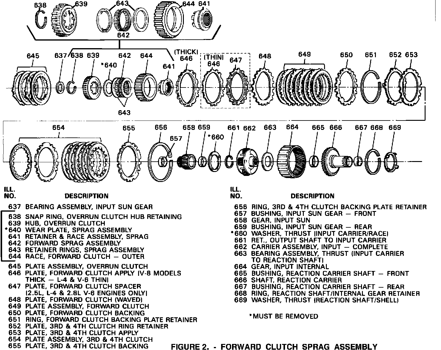 When using the new sprag, race, and hub assembly, the sprag assembly wear plate (640) and the input carrier to race thrust washer (660) must be removed and not replaced (refer to Figure 2).