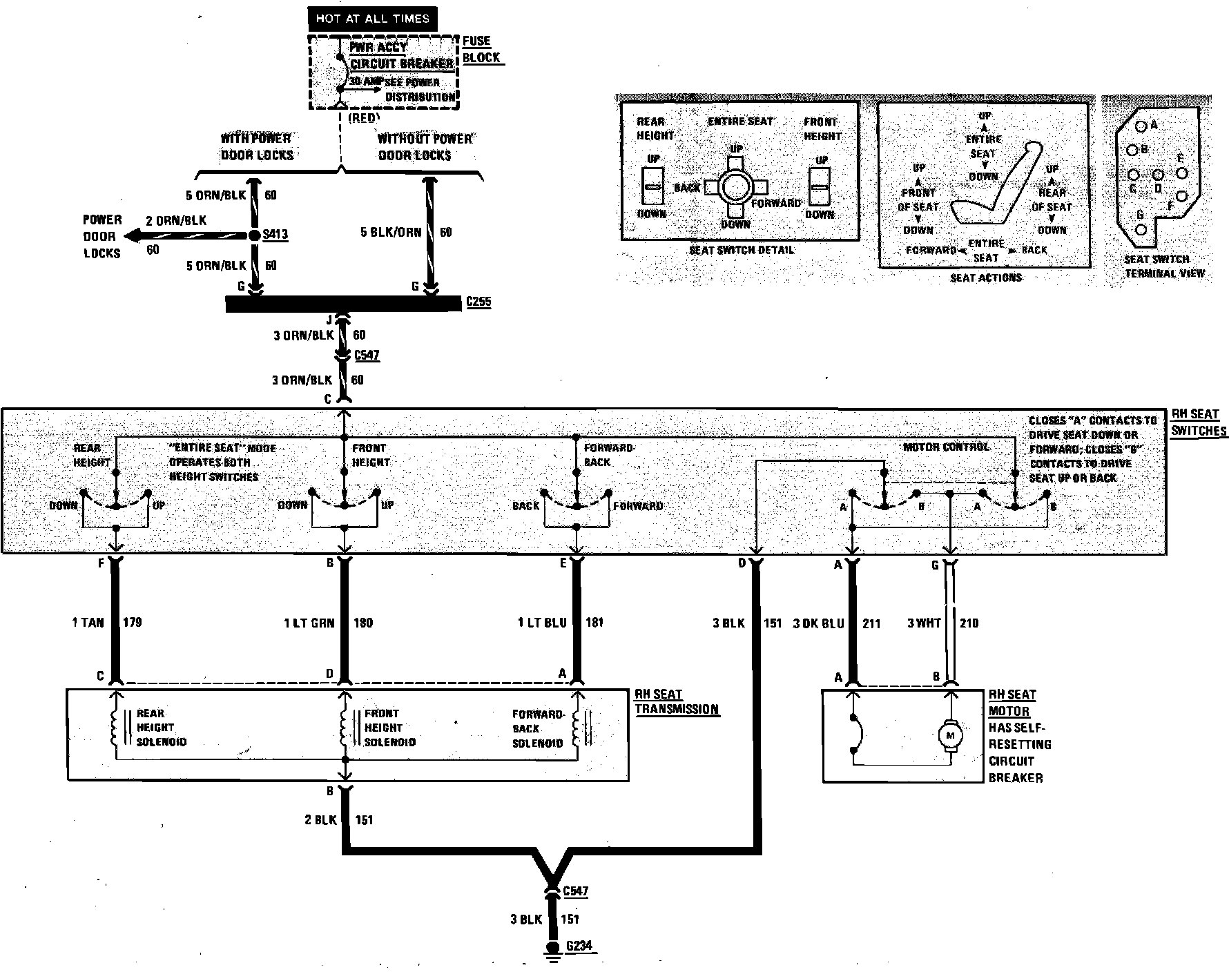 Power Seat Wiring Circuit (Right Hand Seat):
