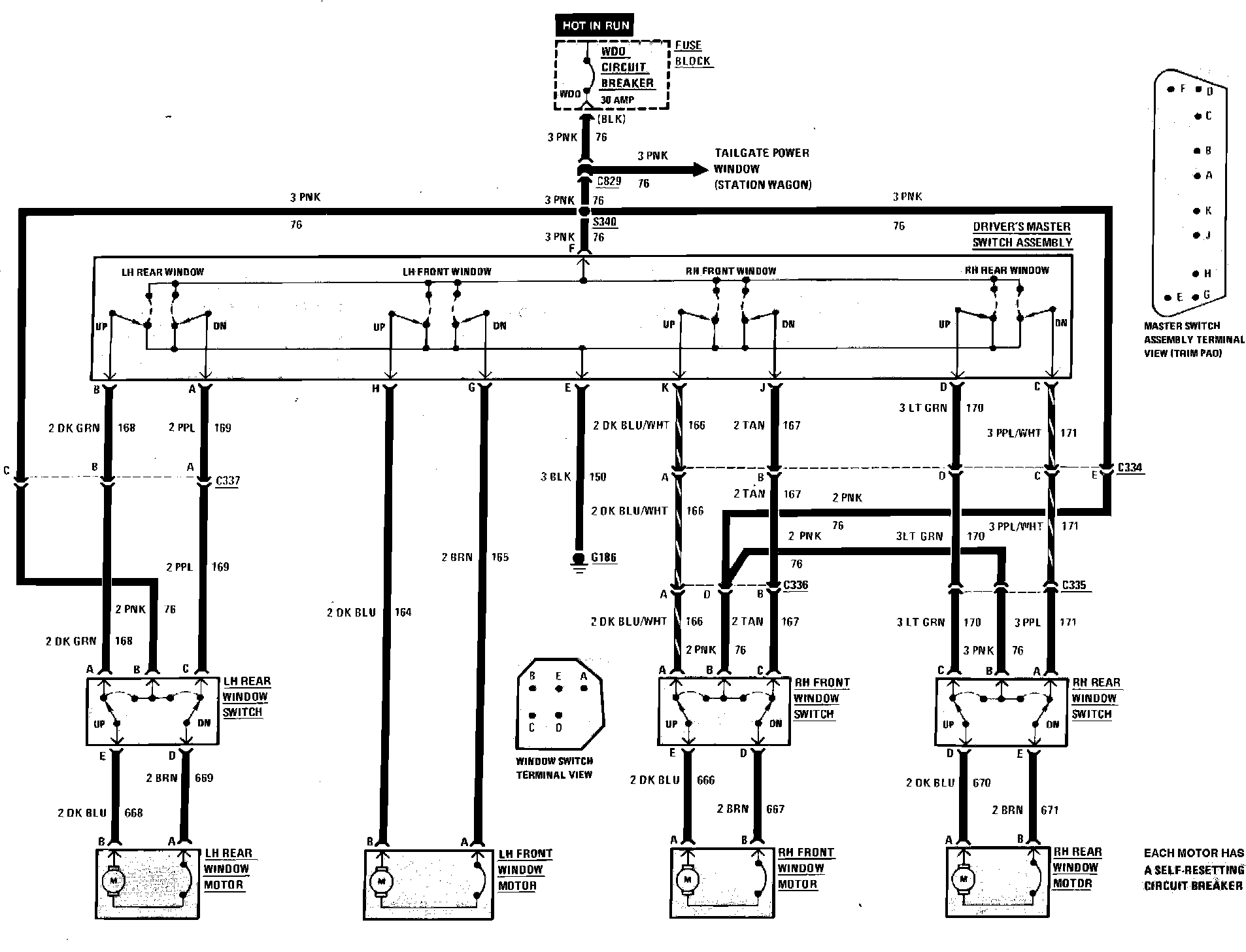 Power Windows Wiring Circuit: