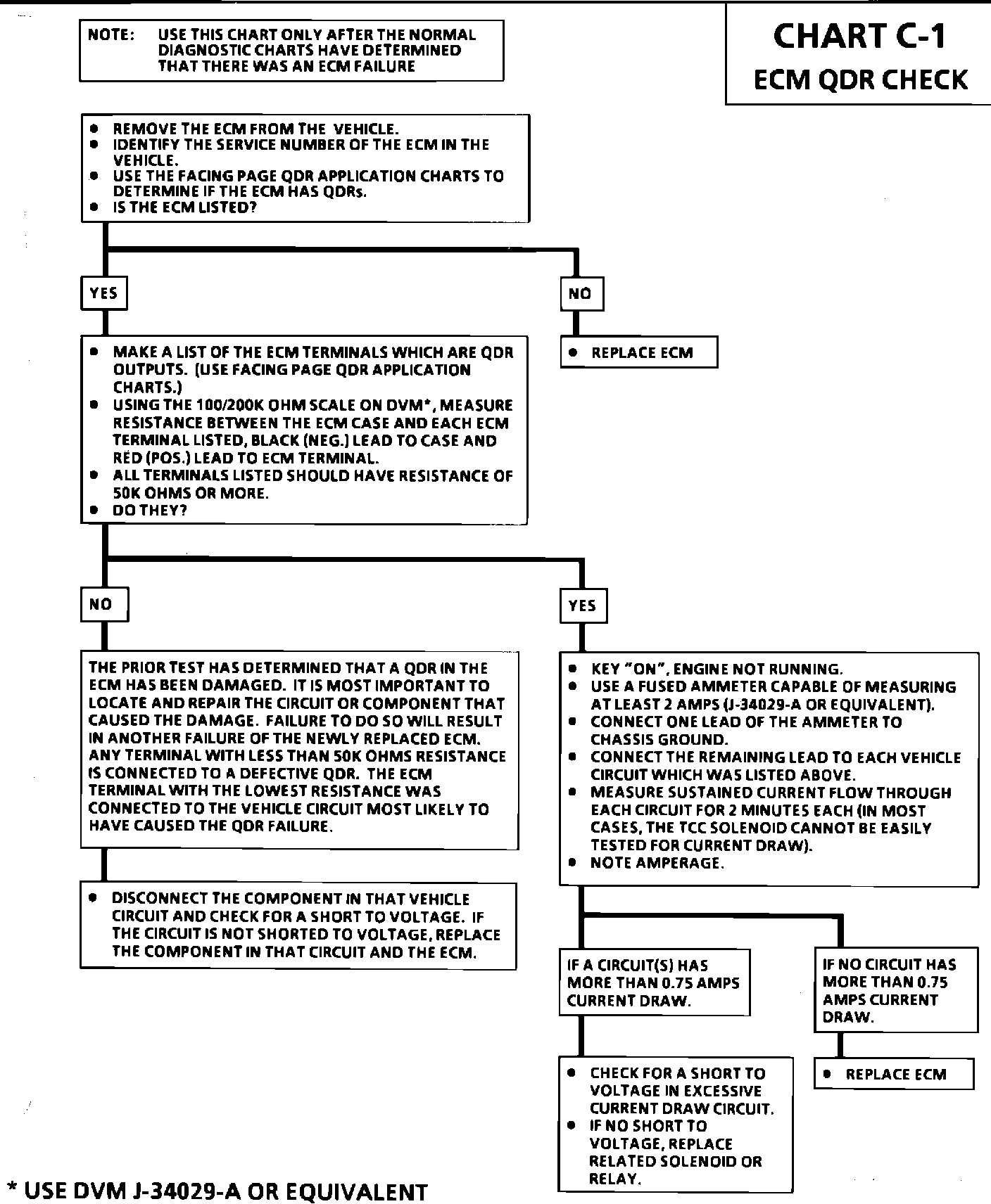 2. Any diagnostic chart where "Replace ECM" is the conclusion, especially if a footnote indicates checking certain circuits for less than 20 OHM's resistance.