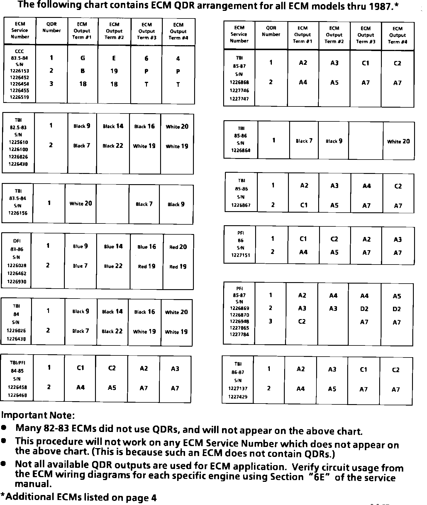 The following chart contains ECM QDR arrangement for all ECM models thru 1987.: