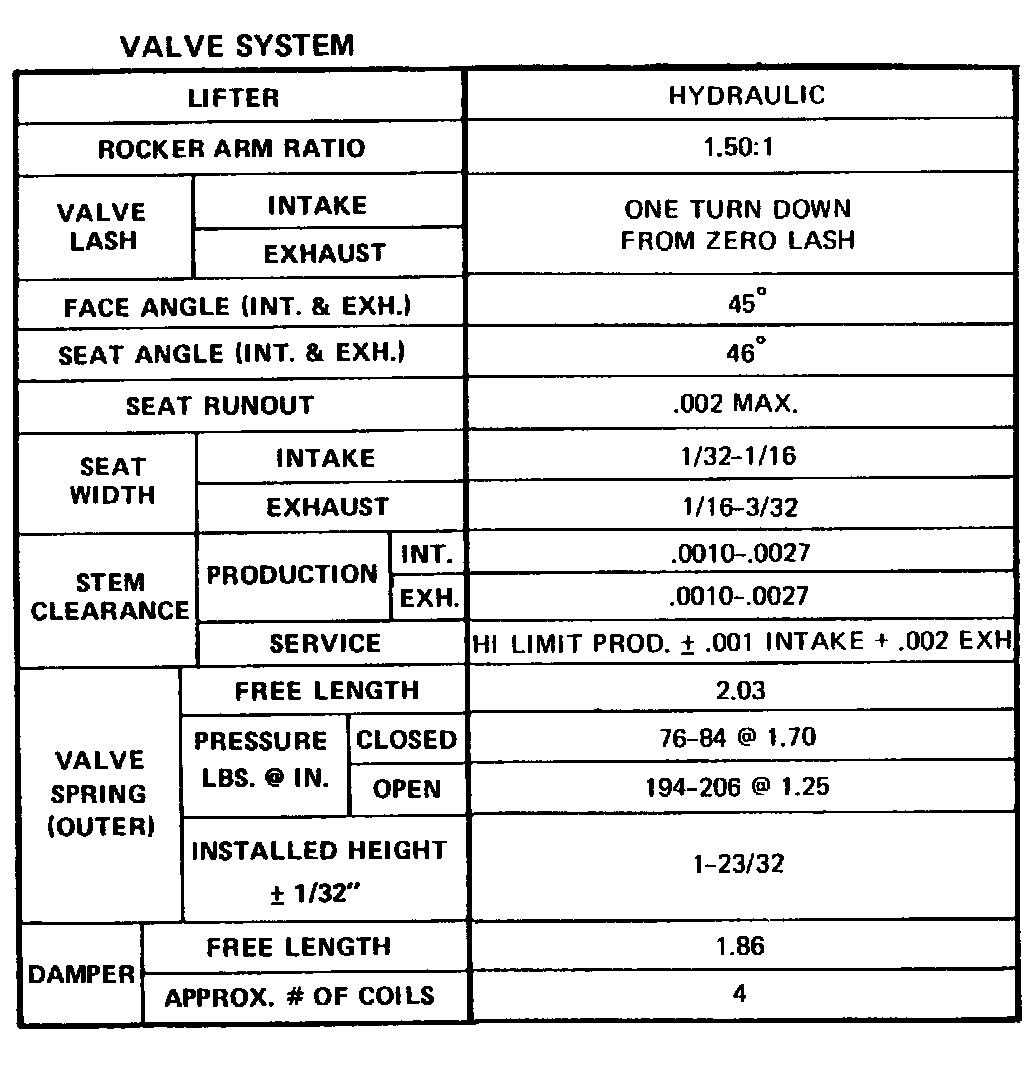 Continued Engine Specifications: