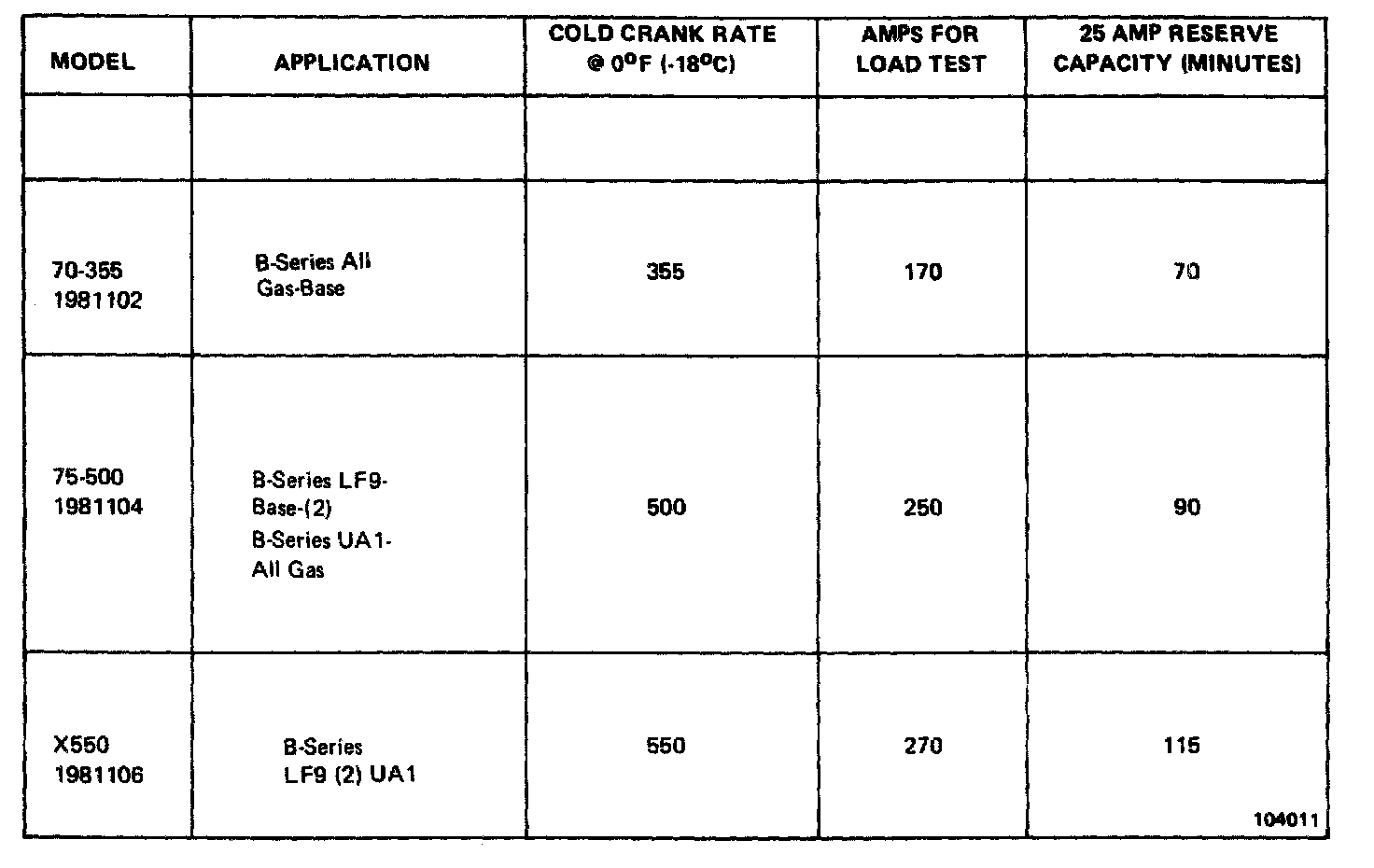 Starting and Charging: Specifications