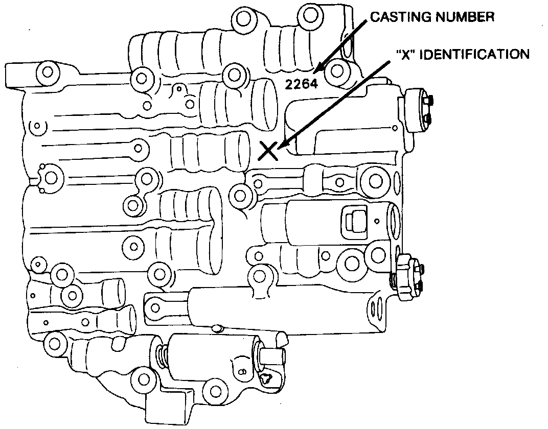 4. Remove valve body assembly while disconnecting manual control valve link from range selector inner lever and removing throttle lever bracket from T.V. link