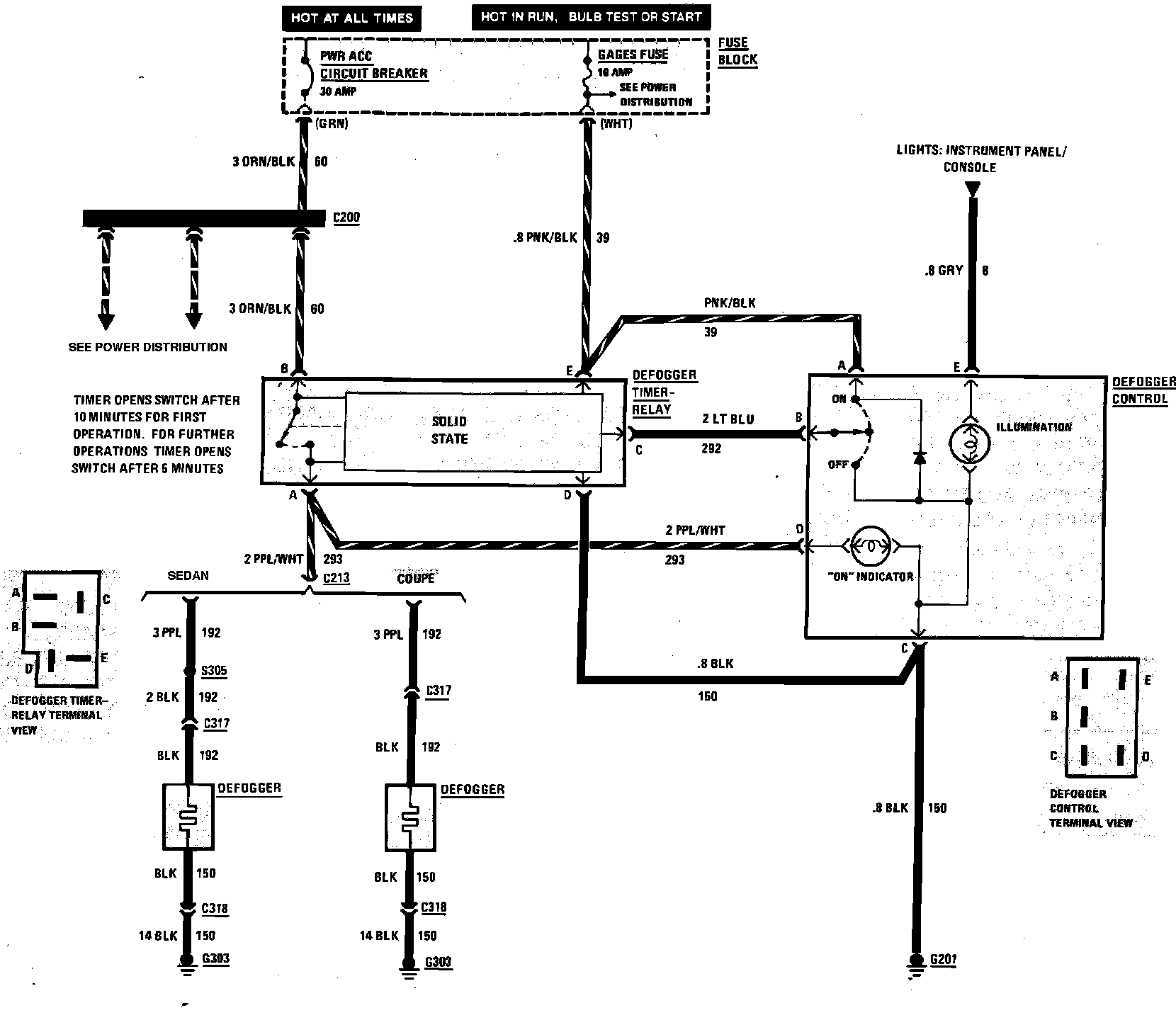 Rear Window Defogger Wiring Circuit: