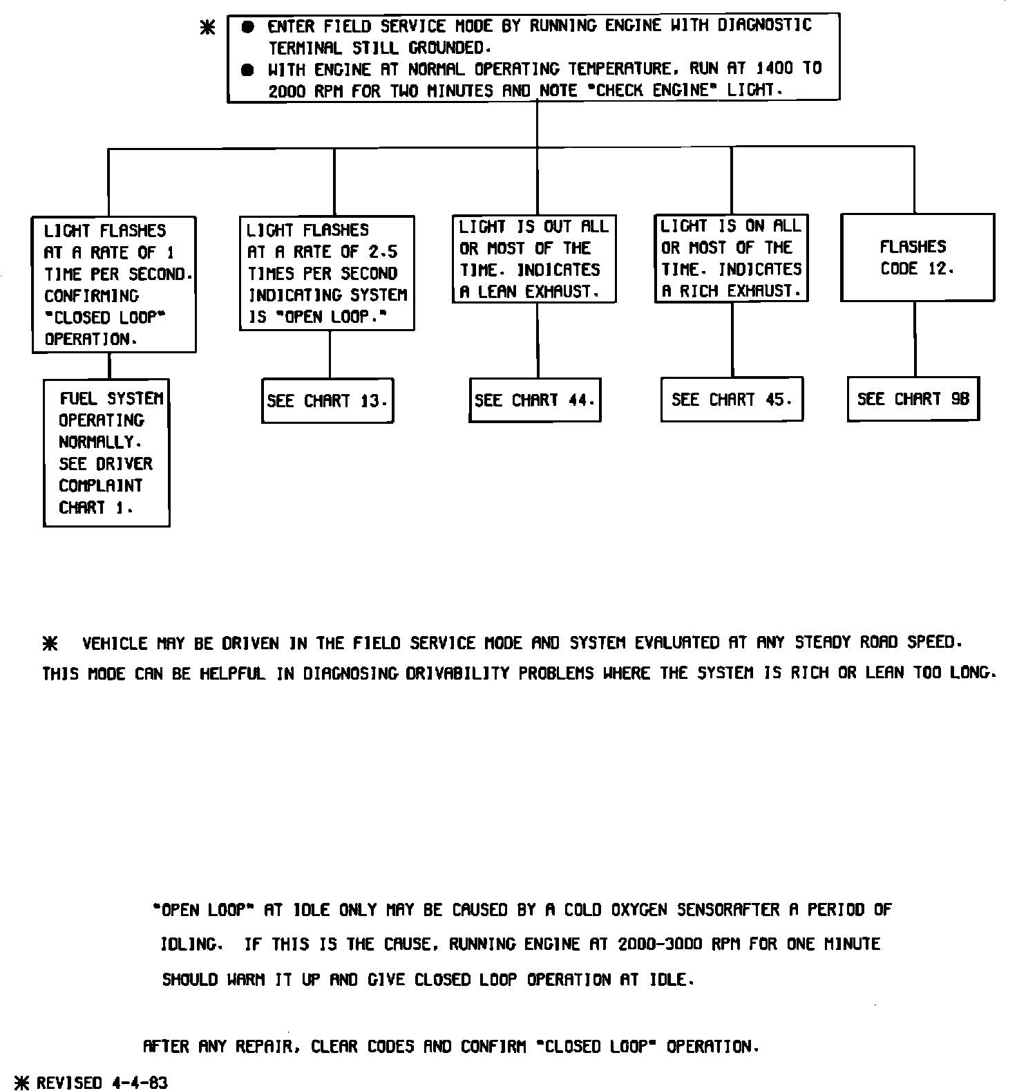 1982-1983 Chart - "Field Service Mode Check"
