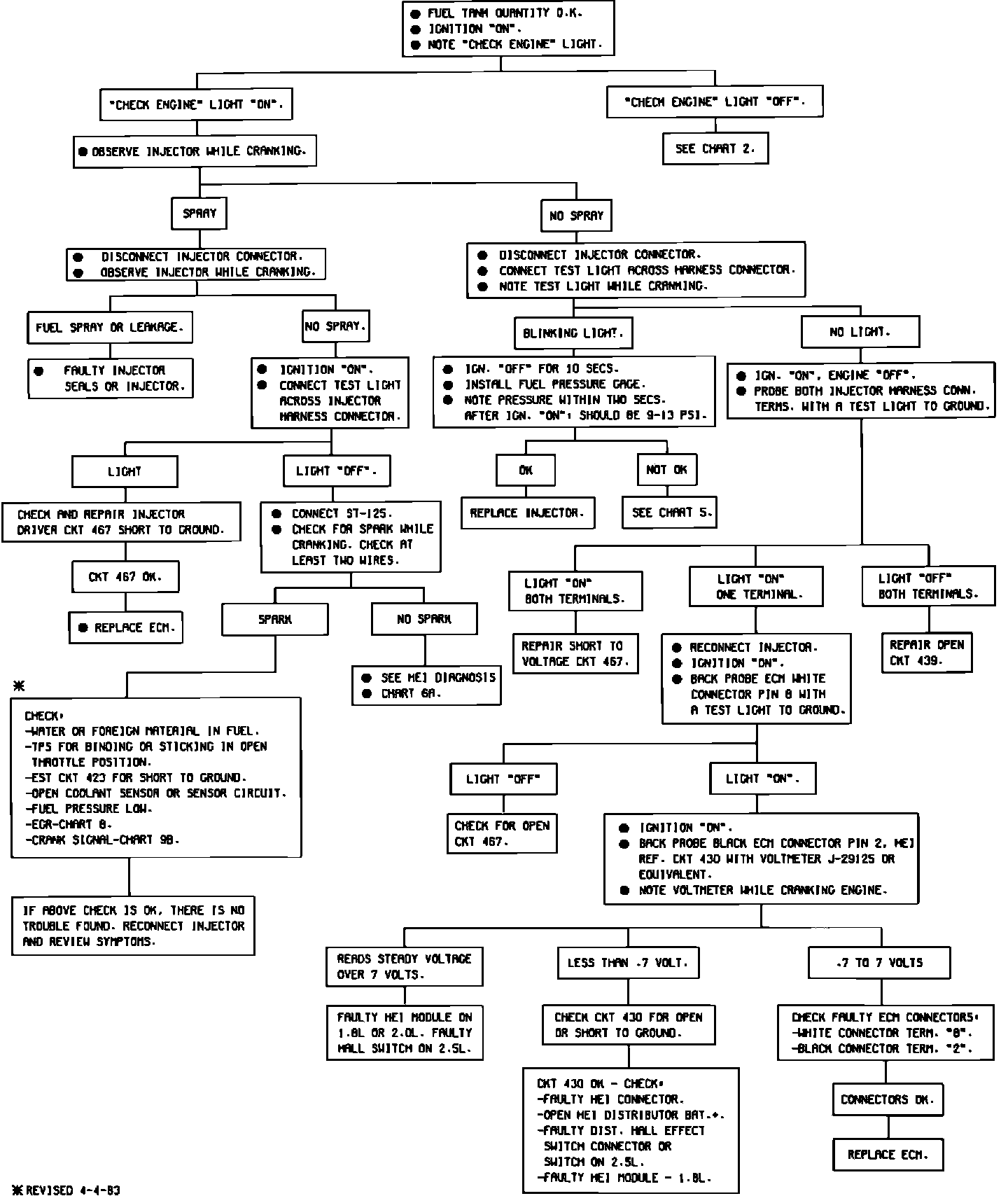 1982-1983 CHART 4FUEL INJECTION - 1.8L, 2.0L, ANO 2.5L ENGINE CRANKS BUT WILL NOT RUN: