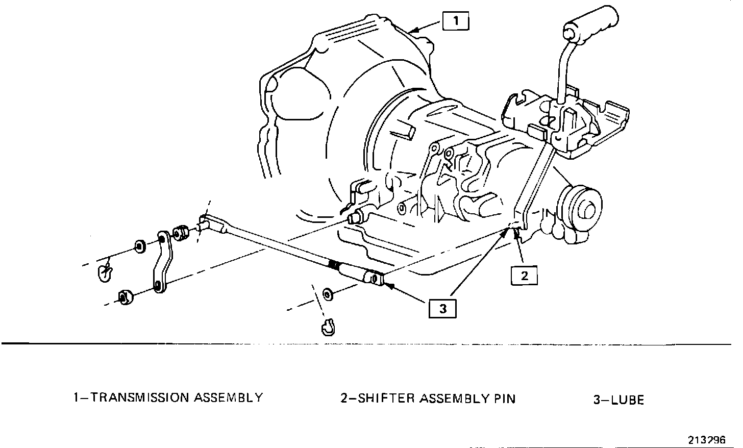 Add lubricant (see illustration below) to the rear shifter rod pin area per the General Motors Maintenance Schedule..