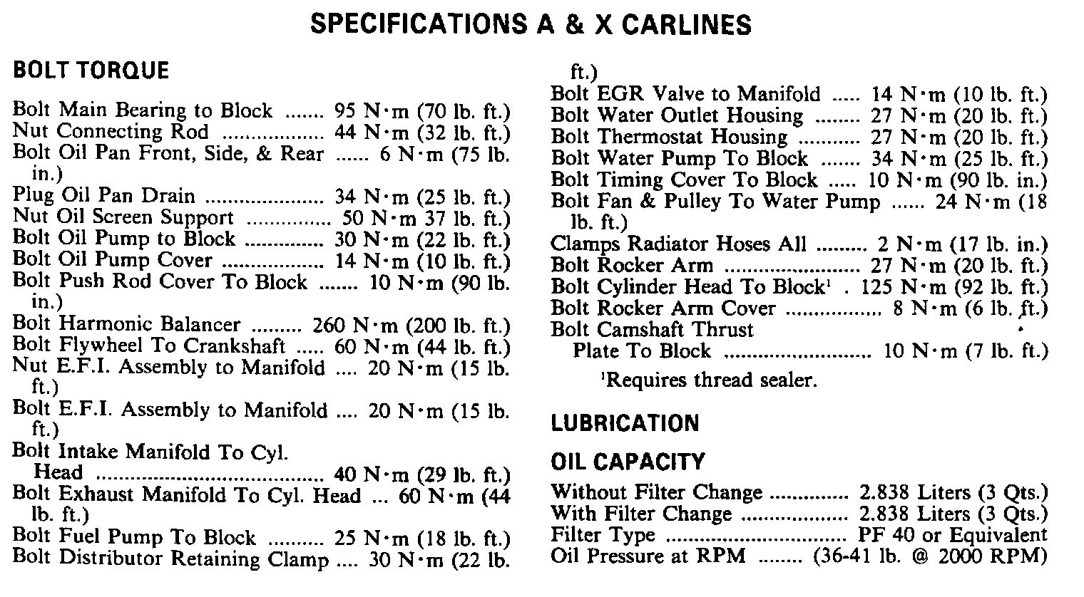 Engine Specifications: