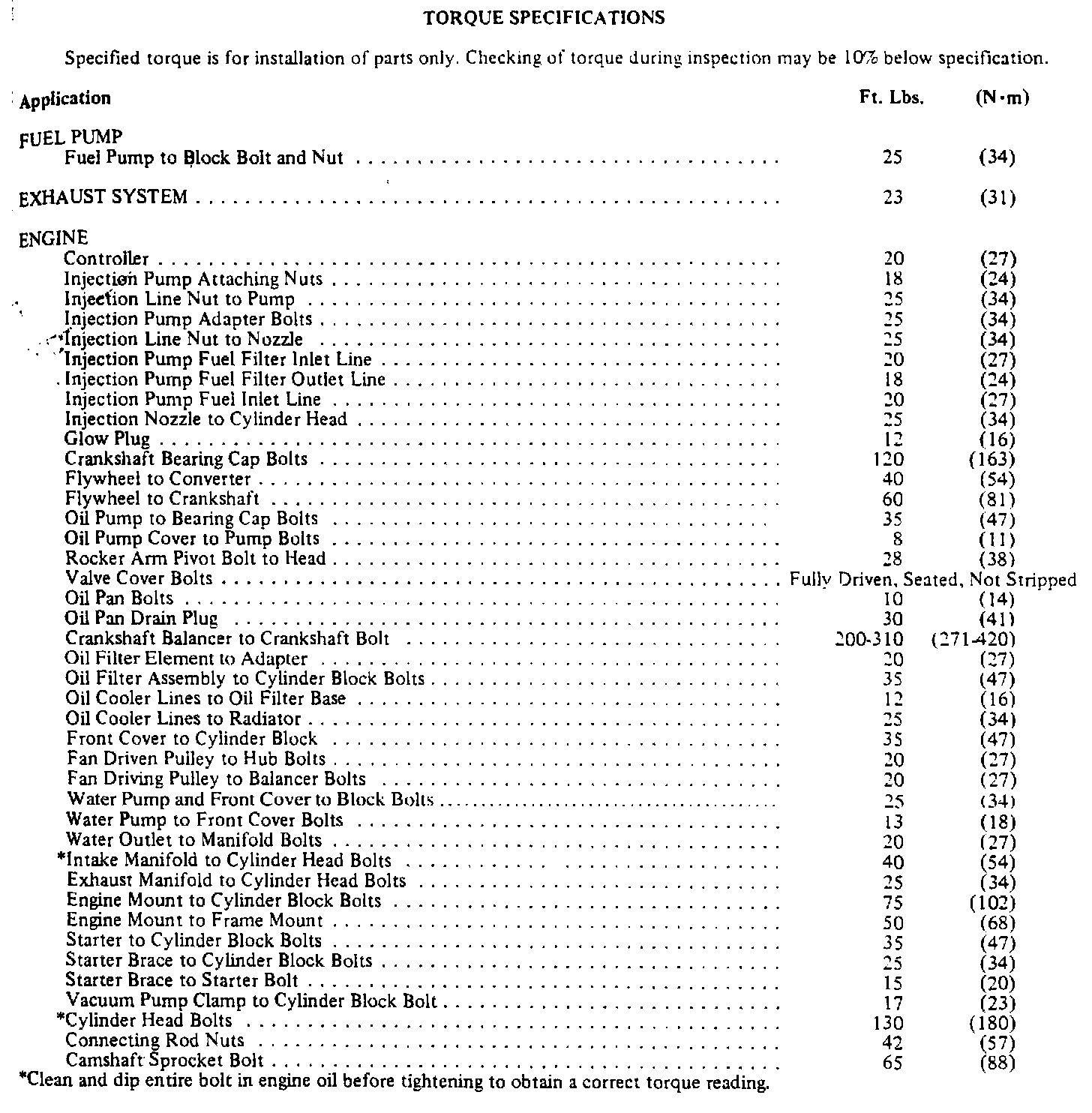 Torque Specifications:
