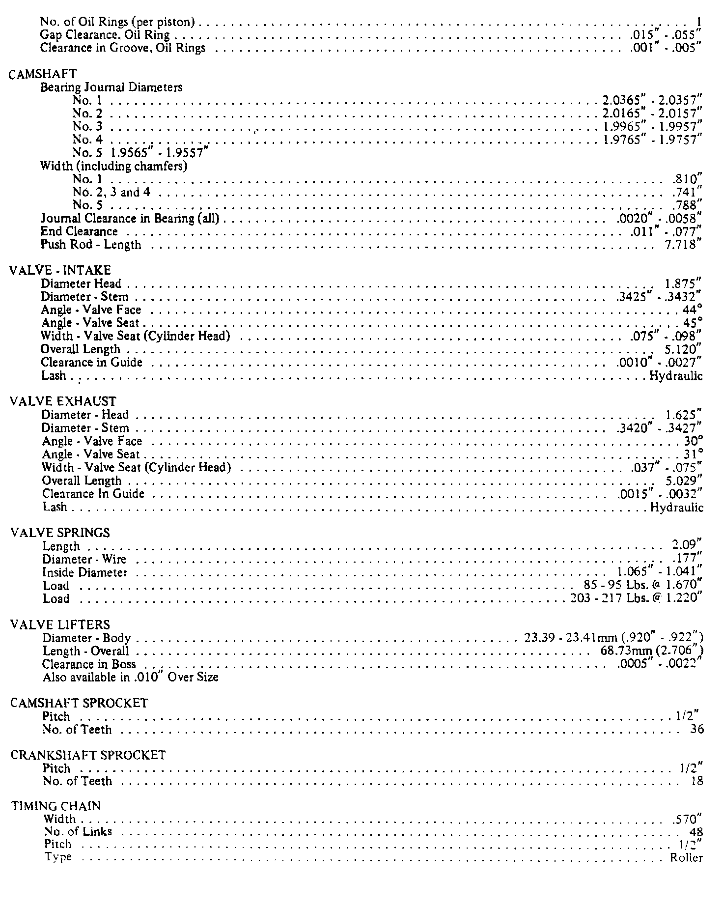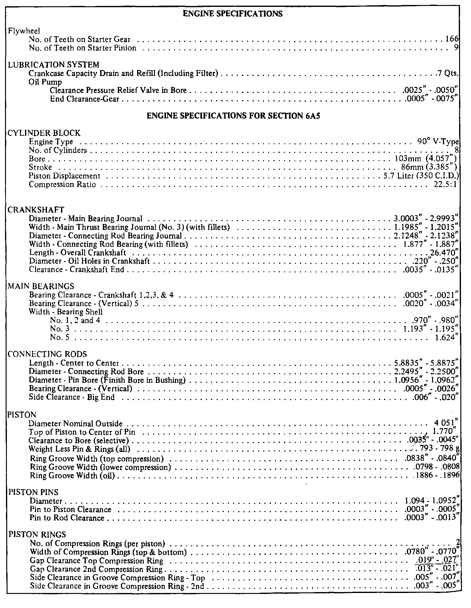 Engine Specifications: