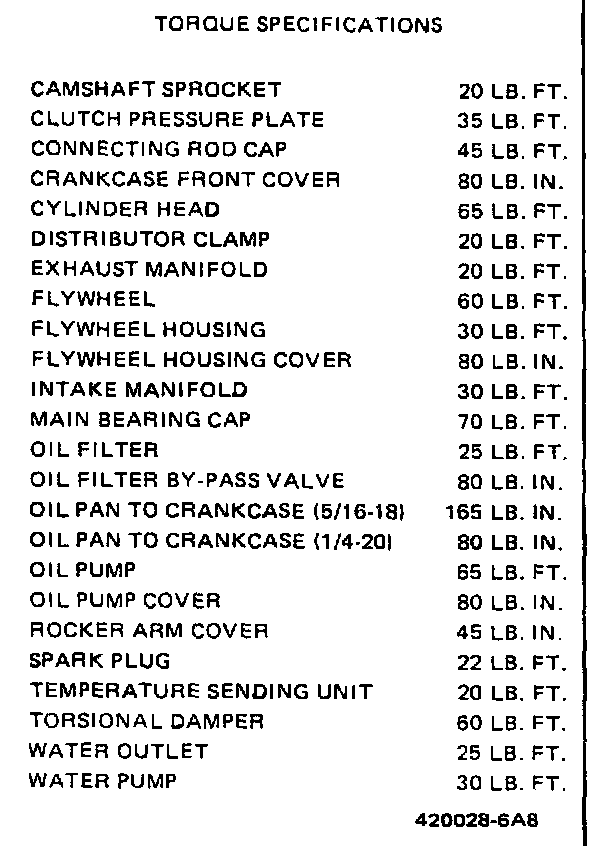 Torque Specifications: