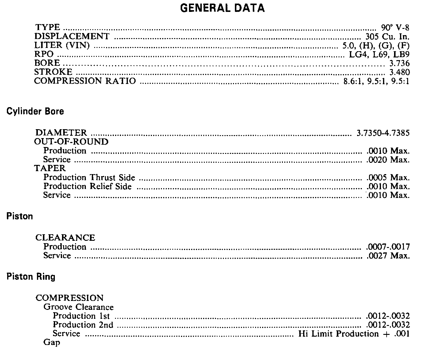 Firebird V8-305 5.0L