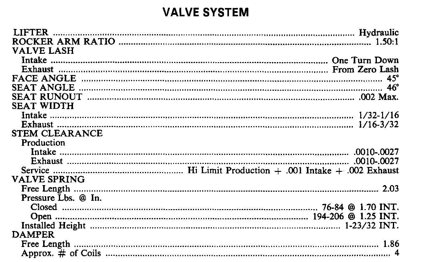 Continued Engine Specifications: