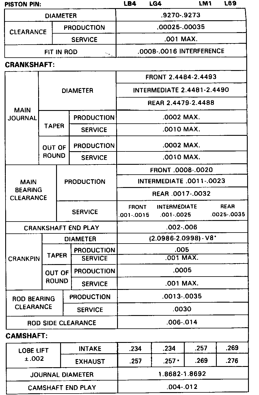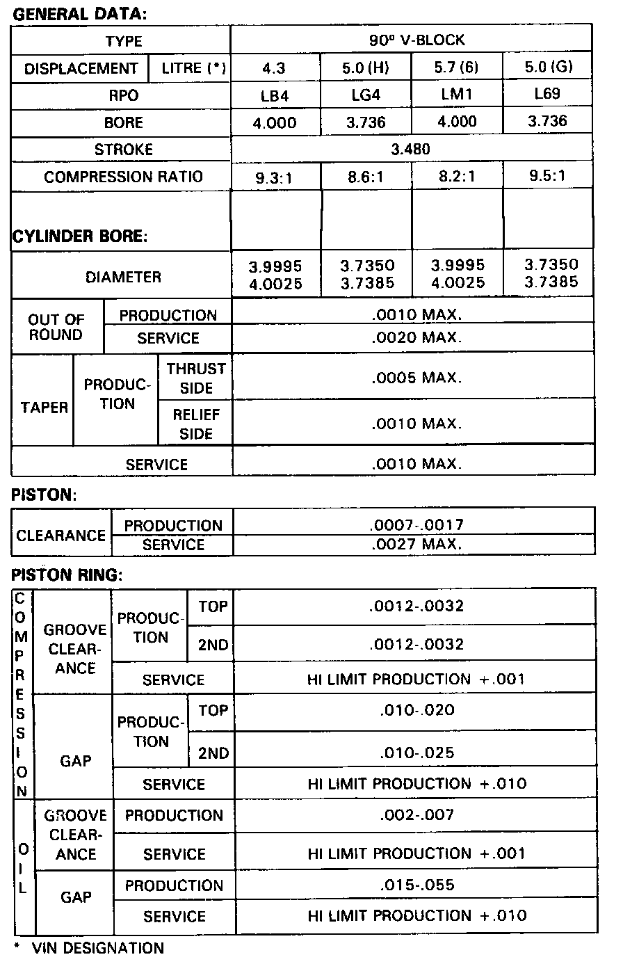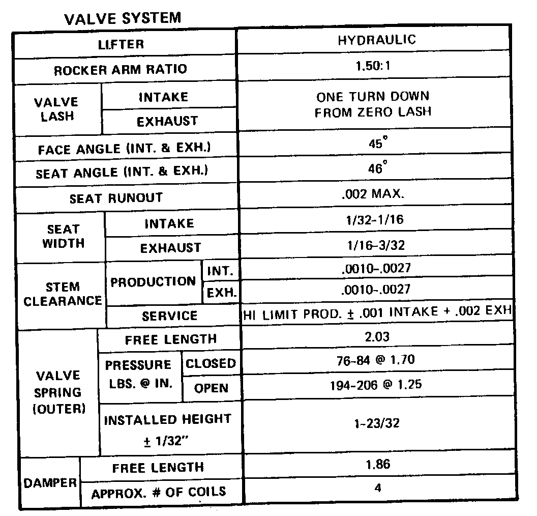 Continued Engine Specifications: