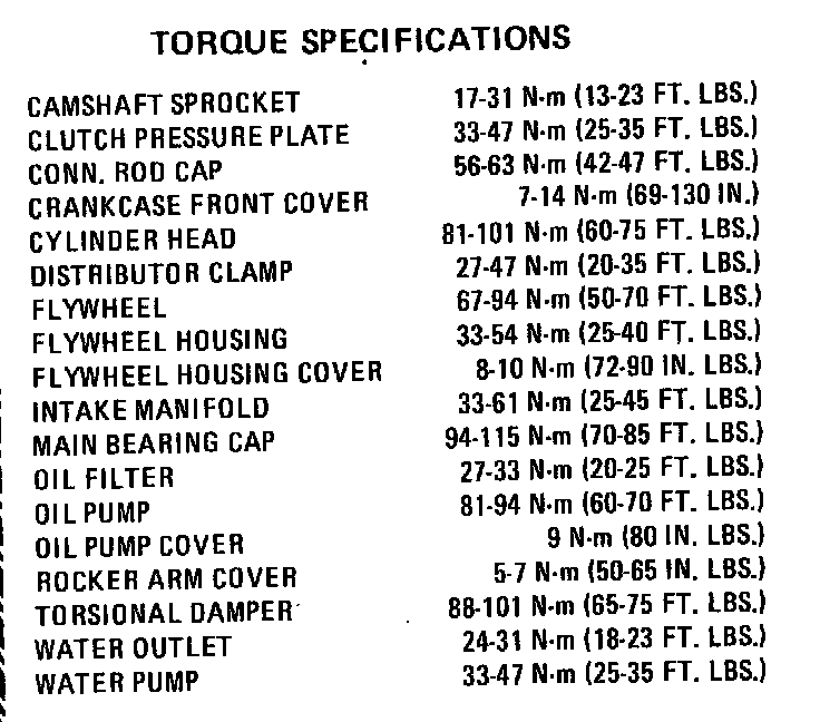 Torque Specifications: